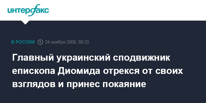 Москва. 24 ноября. INTERFAX.RU - Сподвижник бывшего епископа Чукотского Диомида, заштатный епископ Украинской православной церкви Ипполит (Хилько) покаялся перед собранием ее епископов.