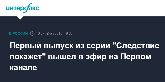 Москва. 10 октября. INTERFAX.RU - Первый выпуск из серии передач "Следствие покажет" вышел в эфир вечером в субботу на Первом канале.
