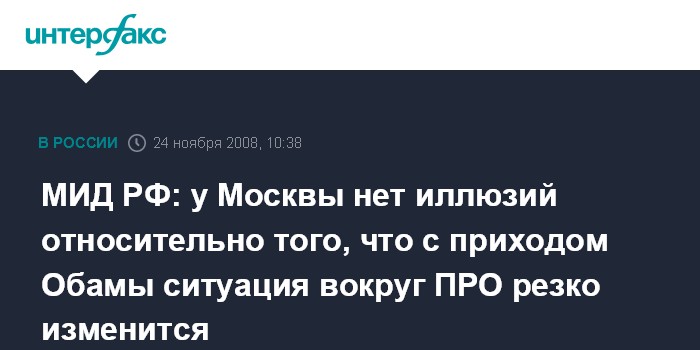 МИД РФ: у Москвы нет иллюзий относительно того, что с приходом Обамы ситуация вокруг ПРО резко изменится