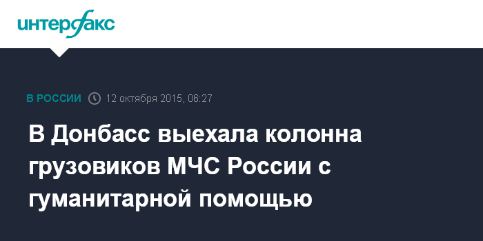 Москва. 12 октября. INTERFAX.RU - Грузовые автомобили МЧС с гуманитарной помощью для жителей Донбасса отправились из подмосковного Ногинска в Ростовскую область, где началось формирование 41-й автоколонны, сообщили в пресс-службе МЧС России.