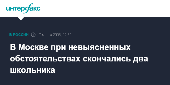 17 марта. INTERFAX.RU - В Москве по невыясненным пока причинам скончались два школьника, сообщил "Интерфаксу" в понедельник источник в правоохранительных органах.