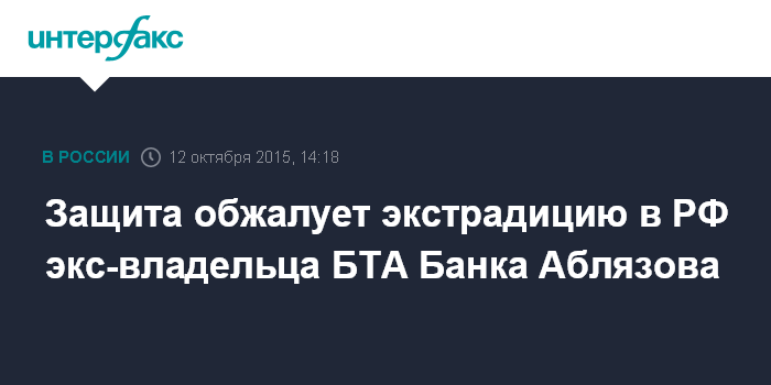 Защита обжалует экстрадицию в РФ экс-владельца БТА Банка Аблязова
