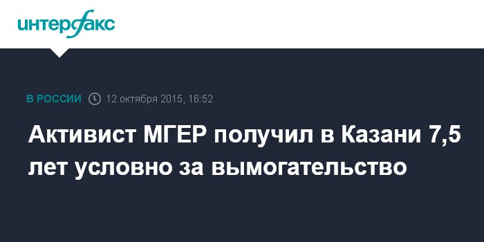 Активист МГЕР получил в Казани 7,5 лет условно за вымогательство