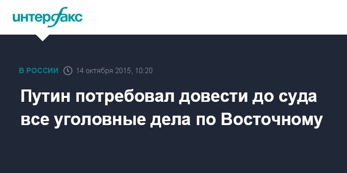 Путин потребовал довести до суда все уголовные дела по Восточному