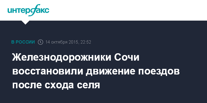 Ранее стало известно, что из-за сходе селей в Сочи задерживались семь поездов: №104 Адлер-Москва, №14 Адлер-Саратов, №680 Адлер-Владикавказ, №642 Адлер-Ростов, №354 Адлер-Пермь, №6812 Олимпийский парк-Туапсе, № 6809 Туапсе-Олимпийский парк.