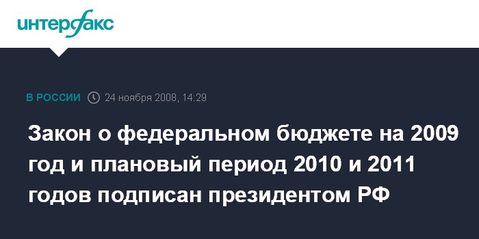 Закон о федеральном бюджете на 2009 год и плановый период 2010 и 2011 годов подписан президентом РФ