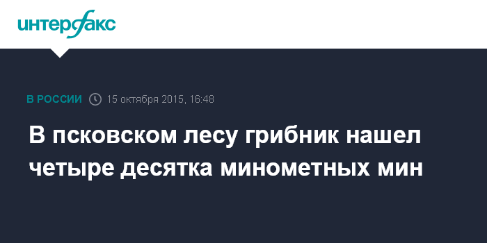 Москва. 15 октября. INTERFAX.RU - Саперы обезвредили 40 минометных мин, которые грибник нашел в четверг в лесу в Псковской области, сообщает пресс-служба регионального управления МЧС.