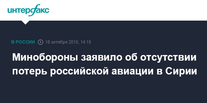 Минобороны заявило об отсутствии потерь российской авиации в Сирии
