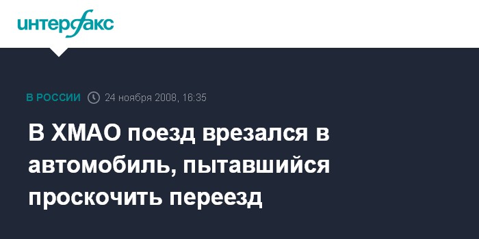 Москва. 24 ноября. INTERFAX.RU - В Нижневартовском районе (Ханты-Мансийский автономный округ) при столкновении с поездом погибла пассажирка автомобиля, водитель которого выехала на железнодорожный переезд на запрещающий сигнал светофора.