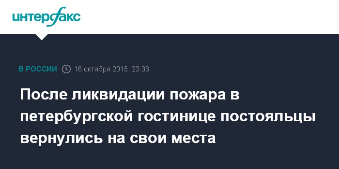 После ликвидации пожара в петербургской гостинице постояльцы вернулись на свои места