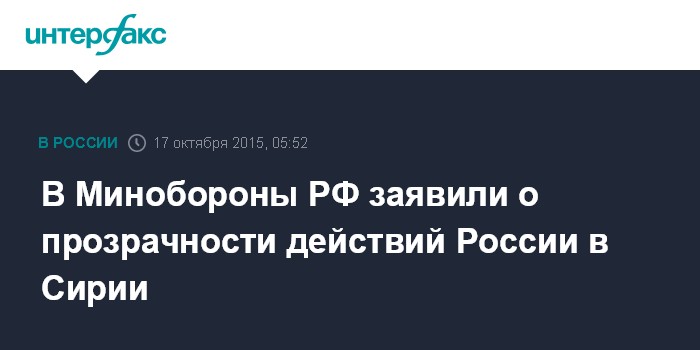 В Минобороны РФ заявили о прозрачности действий России в Сирии
