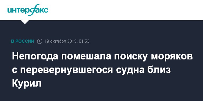 Непогода помешала поиску моряков с перевернувшегося судна близ Курил