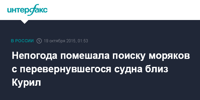 Москва. 19 октября. INTERFAX.RU - Поиски четырех моряков с перевернувшегося близ курильского острова Шумшу плашкоута "Парамушир" в понедельник приостановлены из-за непогоды, сообщил "Интерфаксу" представитель ГУ МЧС России по Камчатскому.