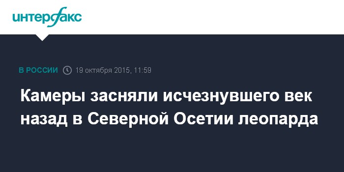 Москва. 19 октября. INTERFAX.RU - В Северной Осетии в высокогорном поселке Кахтисар в Кобанском ущелье тепловизионные камеры засняли леопарда, занесенного в Красную книгу и уже почти 100 лет не встречавшегося на территории республики, сообщил "Интерфаксу" пресс-секретарь Северо-Осетинского филиала "РусГидро" Вадим Тохсыров.