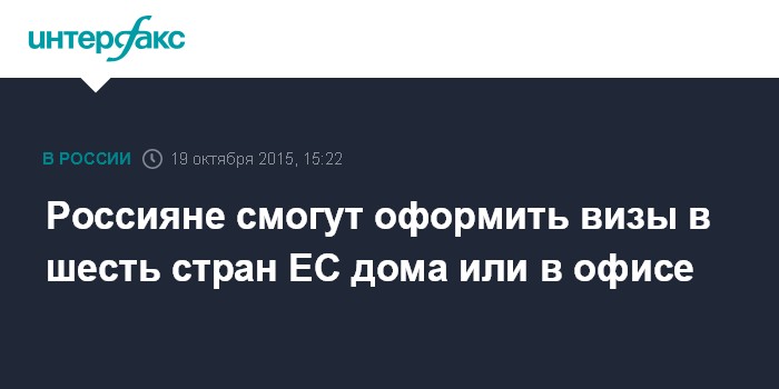 Москва. 19 октября. INTERFAX.RU - Россияне, направляющиеся в Данию, Австрию, Испанию, Португалию, Чехию и Эстонию смогут сдать отпечатки пальцев на визу дома или в офисе, говорится на сайтах визовых центров этих стран.