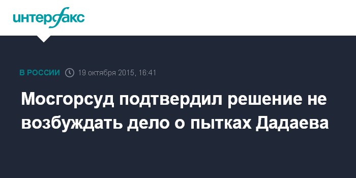 Москва. 19 октября. INTERFAX.RU - Мосгорсуд признал законным отказ следствия в возбуждении уголовного дела о применении пыток к Зауру Дадаеву, предполагаемому исполнителю убийства оппозиционного политика Бориса Немцова.