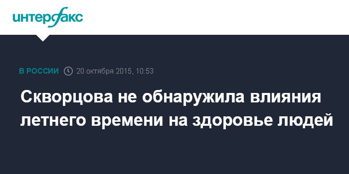 Москва. 20 октября. INTERFAX.RU - Министр здравоохранения Вероника Скворцова прокомментировала инициативу депутатов Калининградской думы о возврате перехода на летнее время и заявила, что подобный переход не оказывает влияния на здоровье людей.