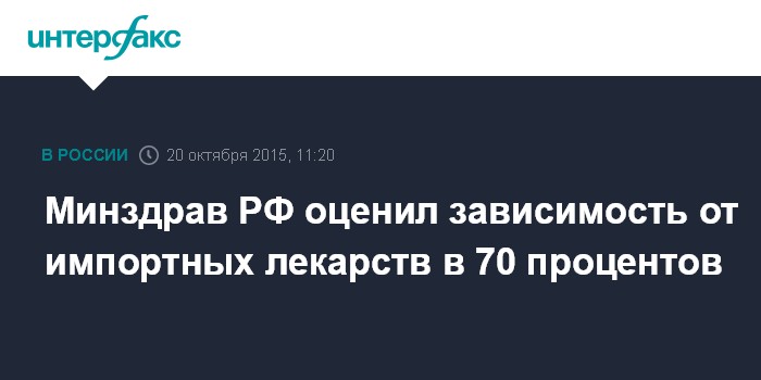 Москва. 20 октября. INTERFAX.RU - Министр здравоохранения РФ Вероника Скворцова оценила лекарственную импортозависимость России.