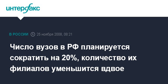 Число вузов в РФ планируется сократить на 20%, количество их филиалов уменьшится вдвое