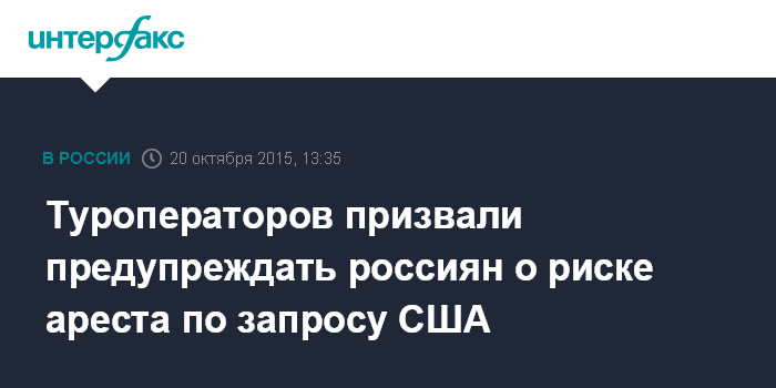 Москва. 20 октября. INTERFAX.RU - Глава Ростуризма Олег Сафонов призвал российских туроператоров предупреждать своих клиентов о том, что для них существует угроза подвергнуться преследованиям в третьих странах по запросам правоохранительных органов или спецслужб США.