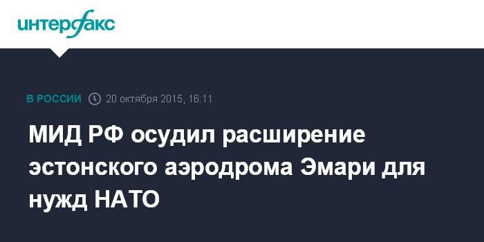 Москва. 20 октября. INTERFAX.RU - Российский МИД во вторник выступил с осуждением заявления командующего военно-воздушными силами Эстонии Яака Тариена об "обусловленных растущими потребностями ВВС НАТО" планах по расширению инфраструктуры военного аэродрома Эмари за счет территорий, предназначавшихся для гражданской авиации.