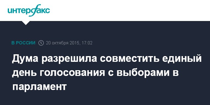 Москва. 20 октября. INTERFAX.RU - Госдума во вторник приняла в третьем, окончательном чтении законопроект о совмещении единого дня голосования с федеральными парламентскими выборами.