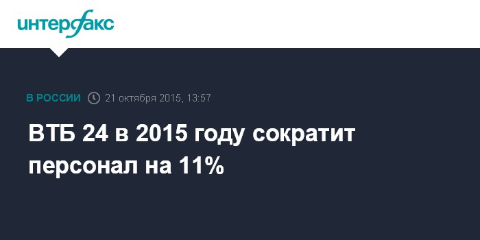 ВТБ 24 в 2015 году сократит персонал на 11%