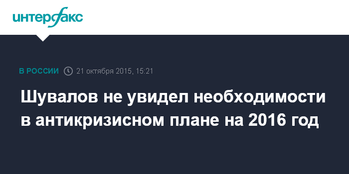 Шувалов не увидел необходимости в антикризисном плане на 2016 год