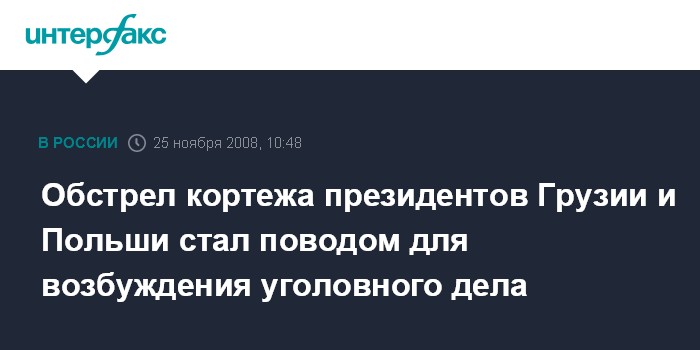 Москва. 25 ноября. INTERFAX.RU - МВД Грузии возбудило уголовное дело в связи с фактом обстрела 23 ноября у границы с Южной Осетией кортежа, в котором находились президенты Грузии и Польши - Михаил Саакашвили и Лех Качиньски.