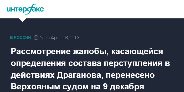 Рассмотрение жалобы, касающейся определения состава перступления в действиях Драганова, перенесено Верховным судом на 9 декабря