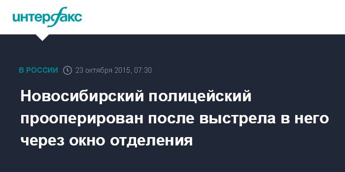 Москва. 23 октября. INTERFAX.RU - Полицейский, раненный в результате выстрела в окно одного из пунктов полиции Новосибирска, совершенного вечером в четверг, успешно прооперирован, сообщили агентству "Интерфакс" в пресс-службе ГУ МВД России по региону.