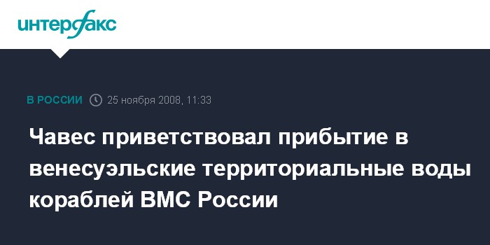 Москва. 25 ноября. INTERFAX.RU - Корабли российского Военно-морского флота примут участие в совместных маневрах с флотом Венесуэлы, заявил во вторник президент Уго Чавес в связи с прибытием российских гостей в территориальные воды его страны.