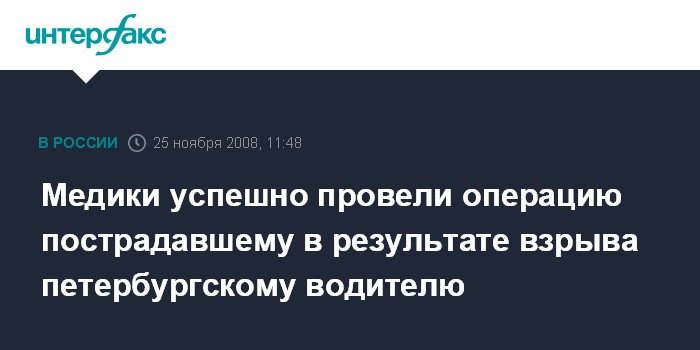 Медики успешно провели операцию пострадавшему в результате взрыва петербургскому водителю