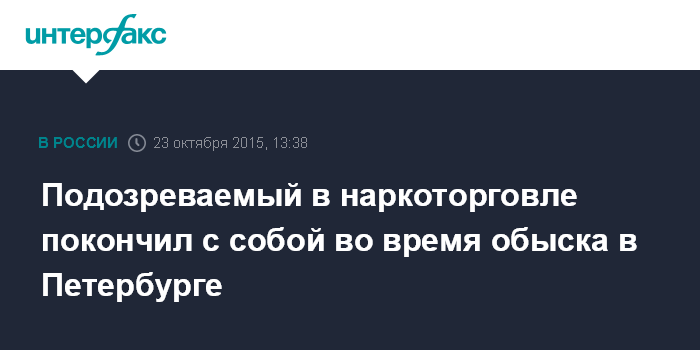 Москва. 23 октября. INTERFAX.RU - Заподозренный в наркоторговле мужчина совершил самоубийство во время обыска в его квартире в Петербурге.