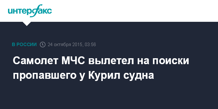 Самолет МЧС вылетел на поиски пропавшего у Курил судна