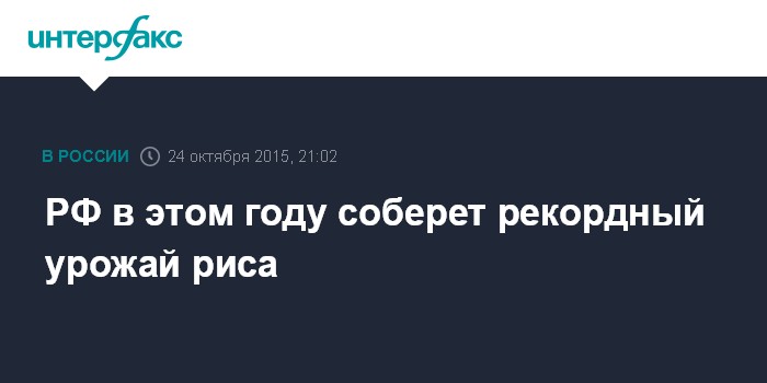 Москва. 24 октября. INTERFAX.RU - Россия в этом году соберет рекордный урожай риса и увеличит сбор других крупяных культур, прогнозируют эксперты ООО "ПроЗерно".