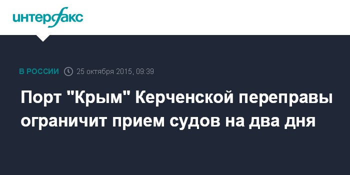 Порт "Крым" Керченской переправы ограничит прием судов на два дня