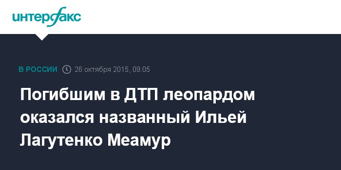Погибшим в ДТП леопардом оказался названный Ильей Лагутенко Меамур