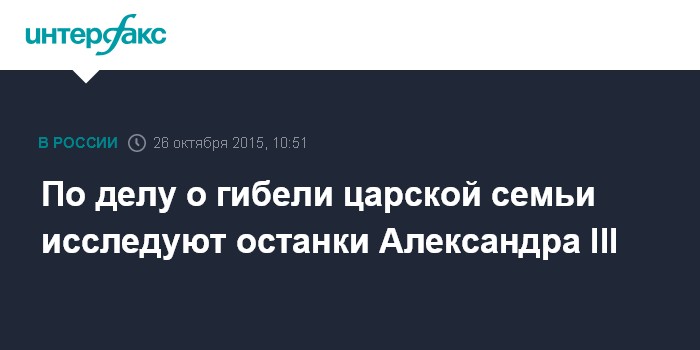 Москва. 26 октября. INTERFAX.RU - В рамках новой экспертизы по делу о царской семьи принято решение исследовать останки российского императора Александра III, сообщил "Интерфаксу" в понедельник старший следователь-криминалист Главного управления криминалистики СК России Владимир Соловьев.