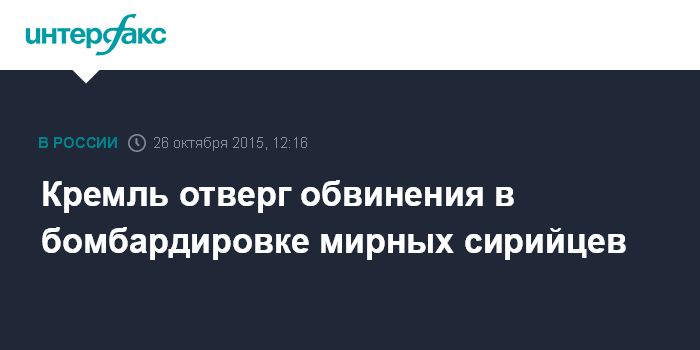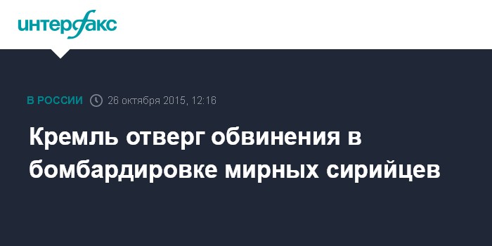 Москва. 26 октября. INTERFAX.RU - В Кремле называют газетными "утками" сообщения о том, что в результате бомбардировок в Сирии российскими ВВС страдают гражданские объекты - российские летчики тщательно выбирают цели.