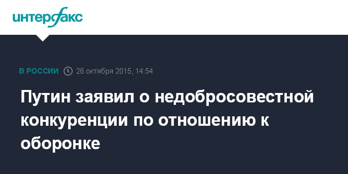 "Соперничество на мировом рынке вооружения и военной техники в последнее время заметно обострилось, хотя и всегда эта сфера была и остается достаточно конкурентной. Это почувствовали на себе и наши оборонные предприятия, которые в текущем году столкнулись с недобросовестной конкуренцией некоторых западных компаний и стран", - сказал Путин.