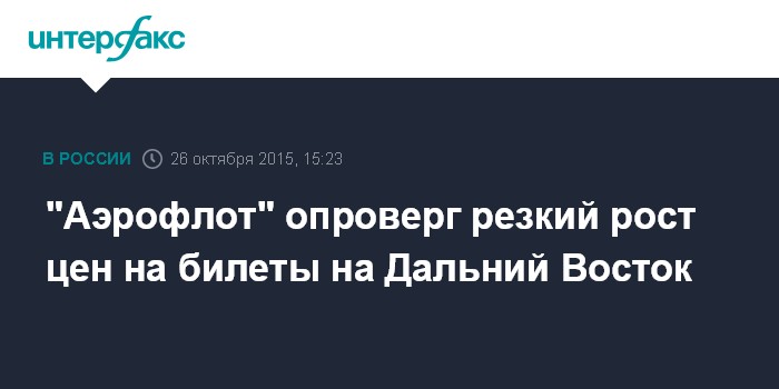 "Аэрофлот" опроверг резкий рост цен на билеты на Дальний Восток