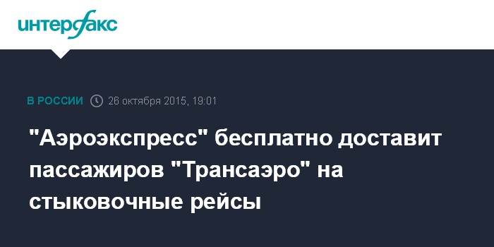 Москва. 26 октября. INTERFAX.RU - ООО "Аэроэкспресс" будет бесплатно доставлять пассажиров "Трансаэро" на стыковочные рейсы в другие столичные аэропорты.