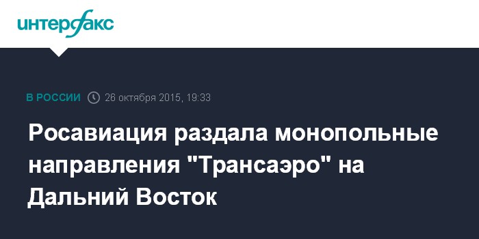 "Трансаэро" выполняло регулярные рейсы по ряду направлений в города Дальневосточного федерального округа, из которых по трем прямым маршрутам из Москвы - в Анадырь, Благовещенск и Магадан - "Трансаэро" было единственным перевозчиком. Для обеспечения непрерывного воздушного сообщения по этим воздушным линиям к перевозкам пассажиров уже приступили авиакомпании "ВИМ-Авиа", "ЮТэйр" и "Икар", - говорится в сообщении Росавиации.
