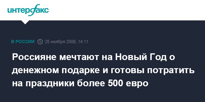 Москва. 25 ноября. INTERFAX.RU - Самый желанный подарок россиян к Новому Году - наличные деньги или их эквивалент (подарочный сертификат).