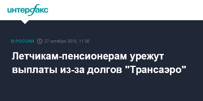Москва. 27 октября. INTERFAX.RU - Крупный долг авиакомпании "Трансаэро" перед Пенсионным фондом России может привести к существенному сокращению выплат десяткам тысяч летчиков-пенсионеров, в том числе и никогда не работавшим на этого авиаперевозчика, сообщает во вторник газета "Коммерсант".