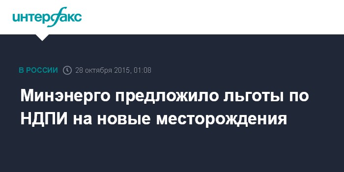 Москва. 28 октября. INTERFAX.RU - Минэнерго предлагает предоставлять новые льготы по НДПИ недропользователям, открывшим месторождения на Дальнем Востоке и Восточной Сибири, сообщил журналистам глава Минэнерго Александр Новак.