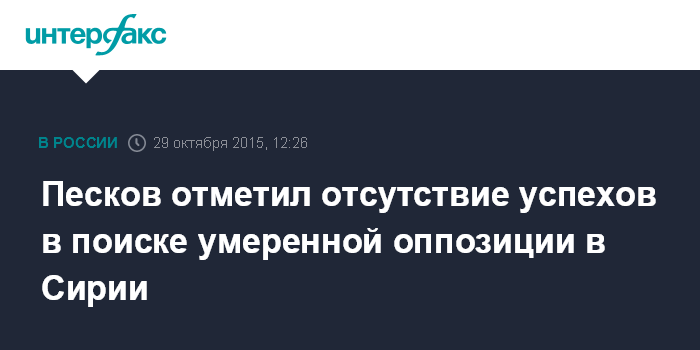 Москва. 29 октября. INTERFAX.RU - Москва ведет активный поиск представителей умеренной сирийской оппозиции, которые могли бы присоединиться к борьбе с терроризмом в регионе, однако конкретных результатов пока не достигнуто, сообщил пресс-секретарь президента РФ Дмитрий Песков.