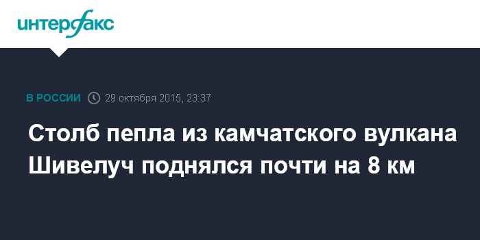Москва. 29 октября. INTERFAX.RU - Вулкан Шивелуч, извергающийся на Камчатке, выбросил столб пепла на высоту 7 км 900 м над уровнем моря, сообщил агентству "Интерфакс - Дальний Восток" в четверг представитель Камчатского филиала геофизической службы РАН.