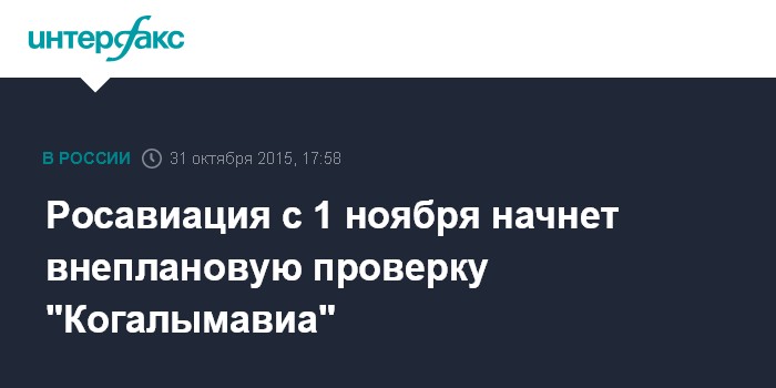 Росавиация с 1 ноября начнет внеплановую проверку "Когалымавиа"